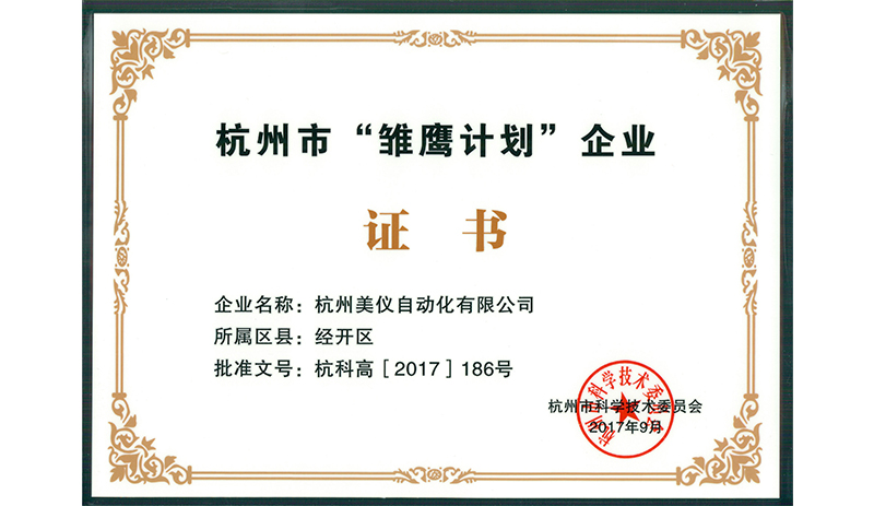 杭州4001老百汇net自动化技术有限公司被杭州市政府列为第一批“雏鹰计划”重点科技型企业!