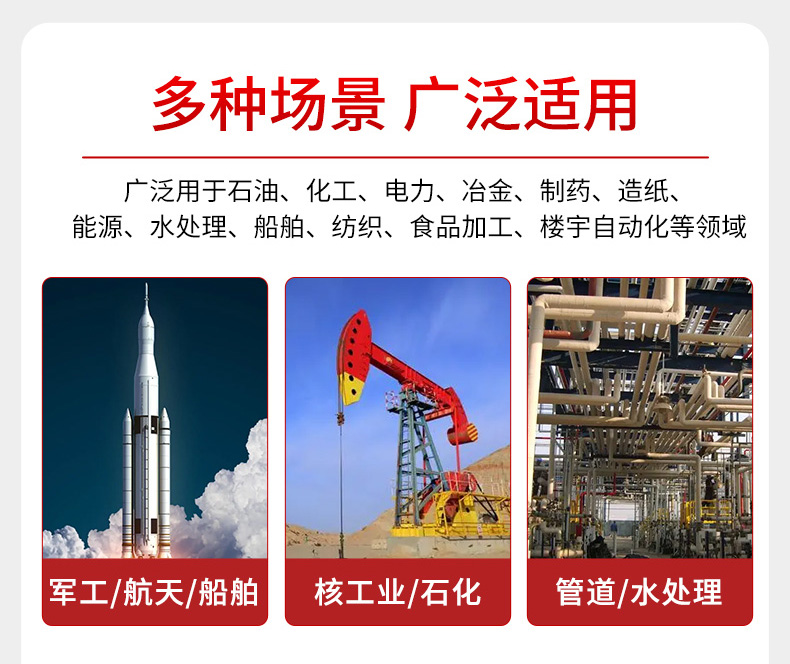 本产品适用于石油管道、油气运输管道、水处理管道、各种流体管线的流量监测和流量控制。