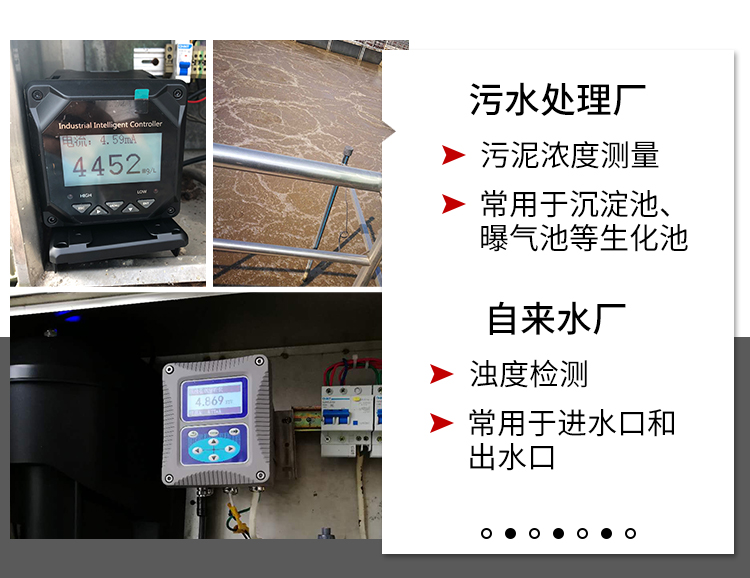 红外双散射光线技术不受色度影响测定浊度值。根据使用环境可以选配带自清洗功能。数据稳定,性能可靠;内设自诊功能,保证数据准确;安装和校正简单。
