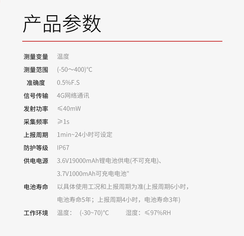 4G通讯 电池供电 IP67防护 低功耗运行